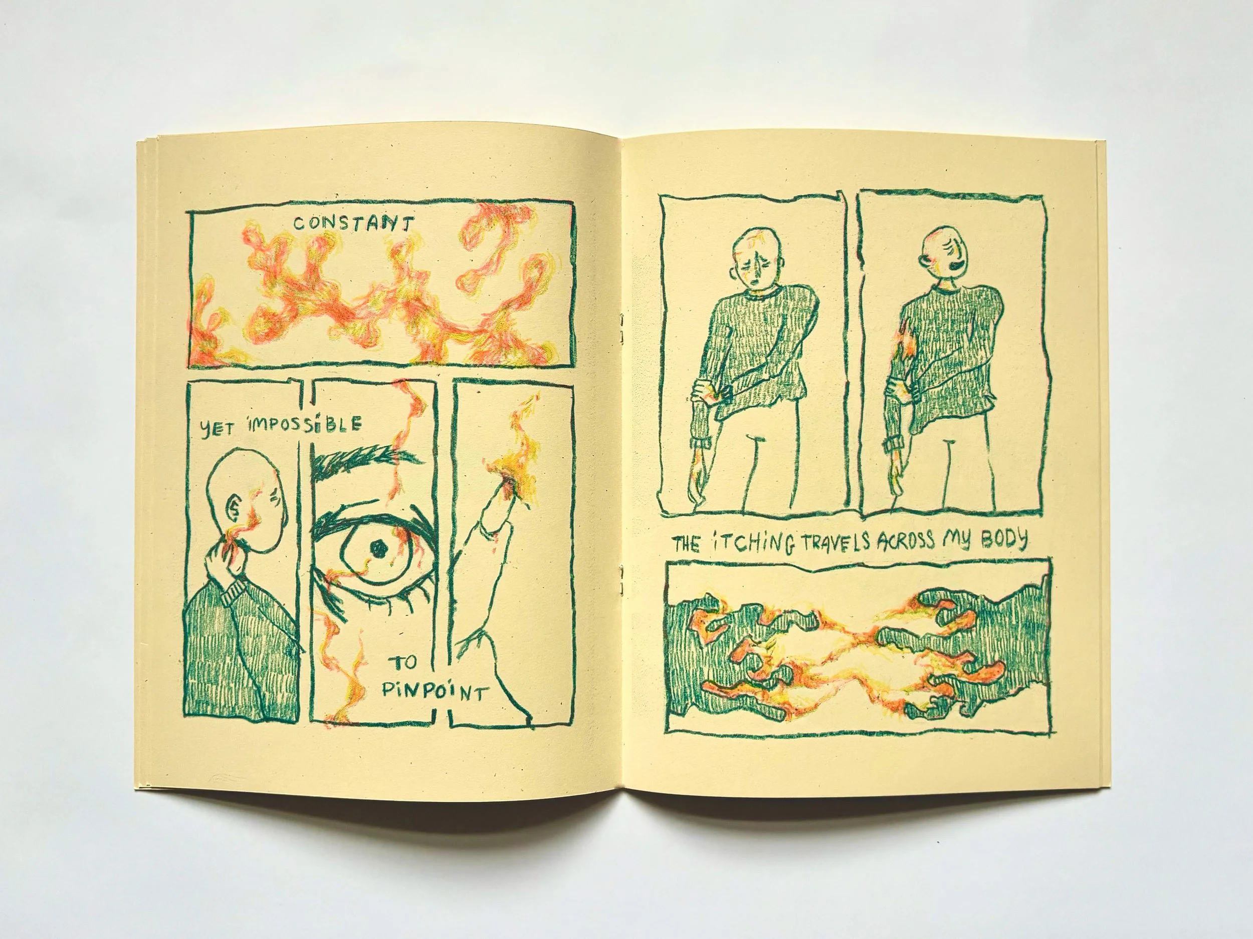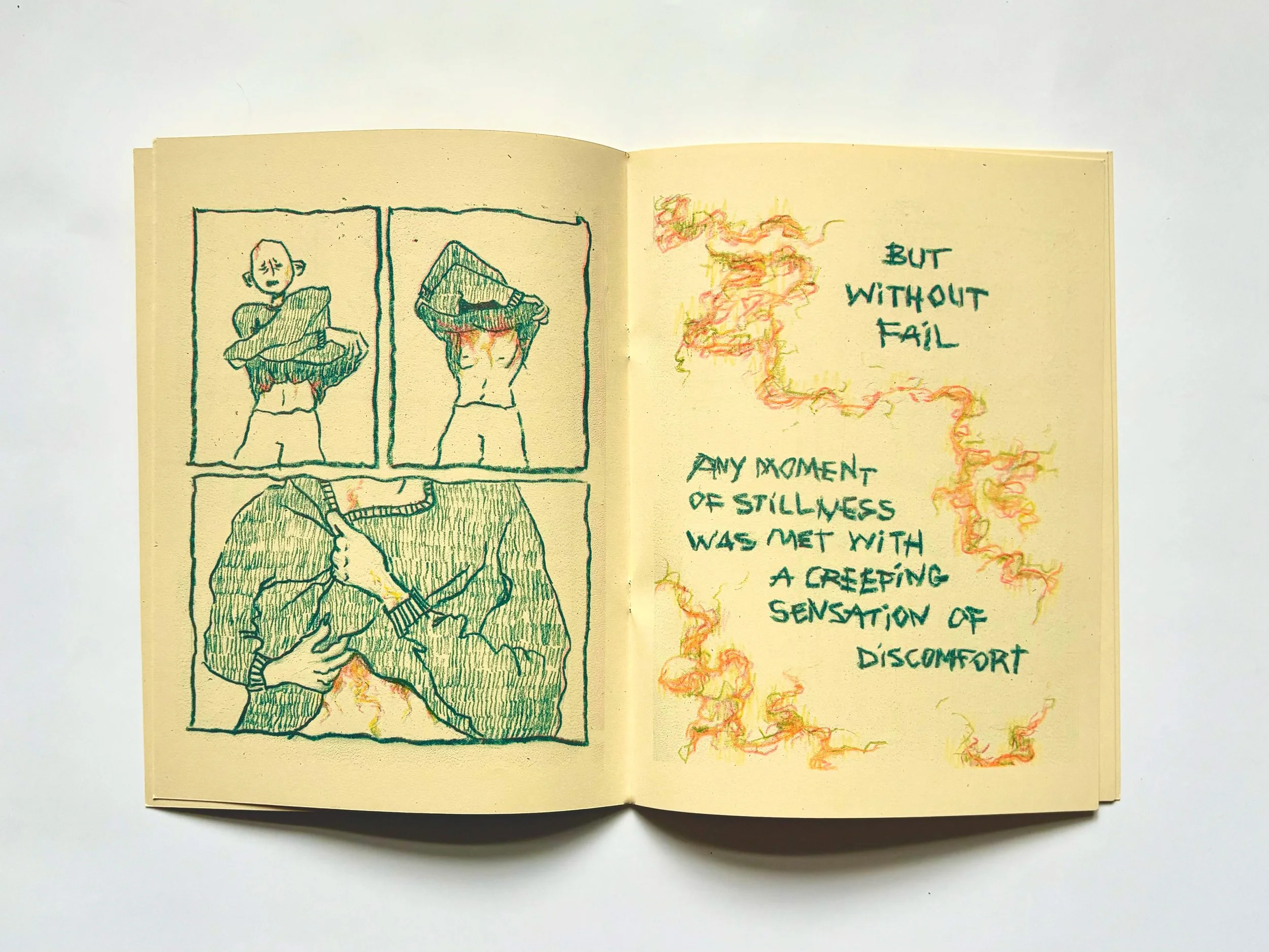 20 page, CMY (teal, fluorescent pink, and yellow) RISO printed & saddle stitched comic